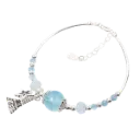 Vòng bạc đá Aquamarrine phối charm hình tháp mix bạc
