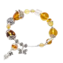 Vòng bạc đá thạch anh vàng phối charm cỏ 4 lá