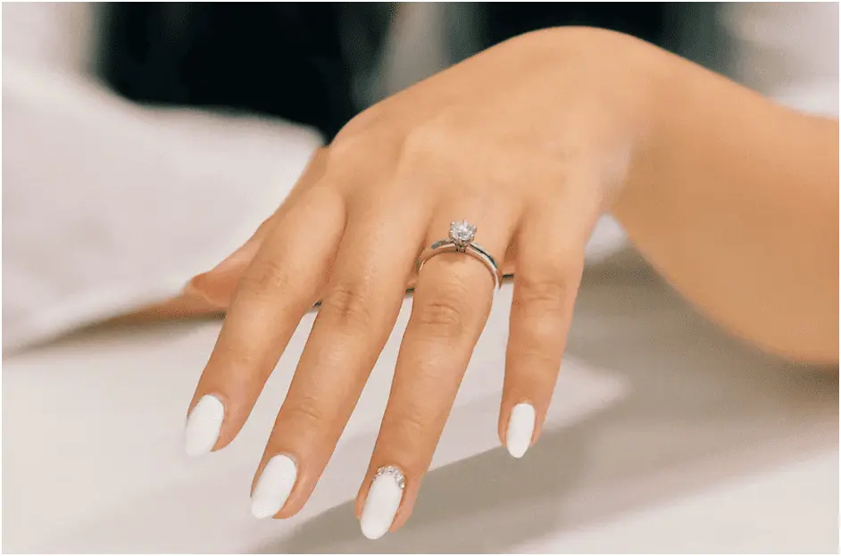 - Đeo cùng bàn tay, khác ngón: Nhẫn cưới được đeo ở ngón áp út, còn nhẫn cầu hôn được chuyển sang đeo ở ngón giữa cùng bàn tay.