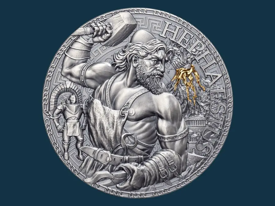 Để vinh danh vị thần của lửa, của sự sáng tạo và nghệ thuật chế tác, kiệt tác Xu bạc Hephaestus đã ra đời, là một phần của bộ sưu tập The Great Greek Mythology danh tiếng.