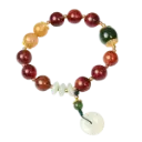 Vòng tay đá thạch anh tóc đỏ phối ngọc hòa điền mix bạc