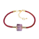 Vòng tay dây vải phối charm ngọc tím bọc bạc cao cấp mix bạc